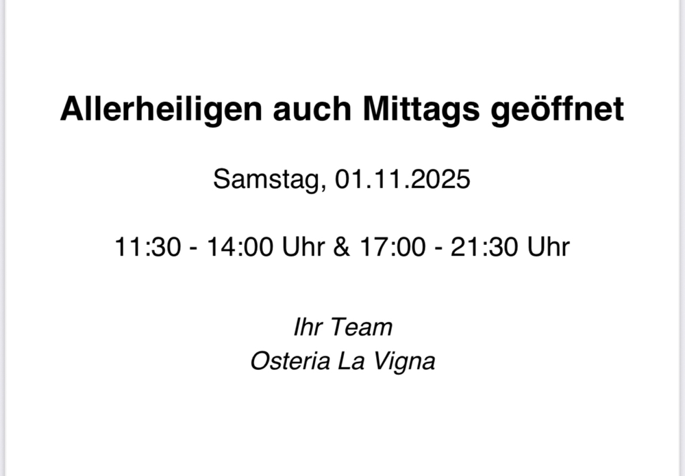 Bitte reservieren Sie vorher ein Platz da unsere Osteria meistens gut besucht ist, Grazie.